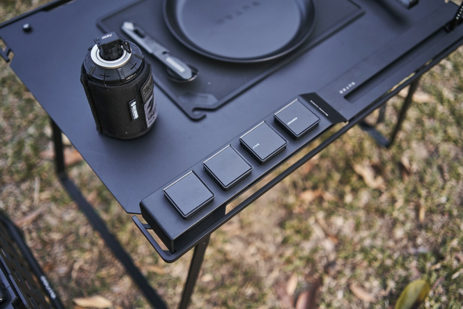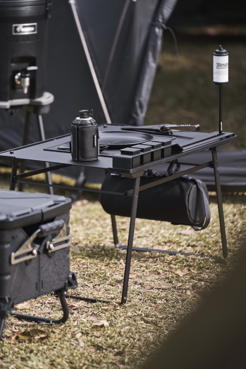 A solo combo menu includes one Bunker Table, one Bunker Cubicle, and one set (4 pieces) of Mini Cubes. Function as an easy and convenient cooking table carried to anywhere. Refer specifications in each product page.
